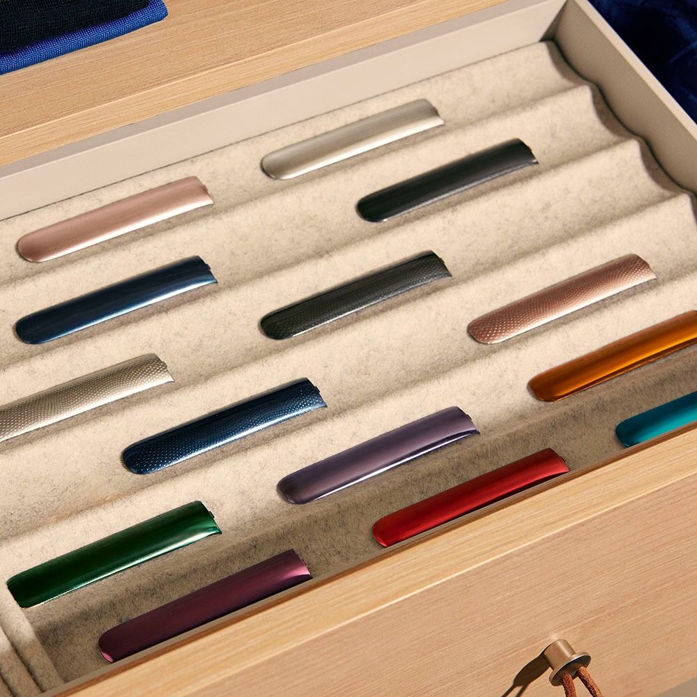 Ovunque vai, tieni tutto a portata di mano con i nostri eleganti astucci, disponibili in una gamma di diversi colori e tessuti.